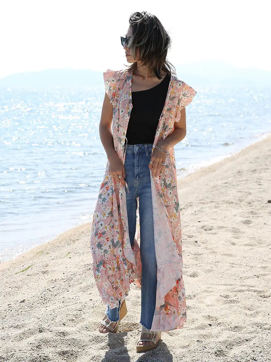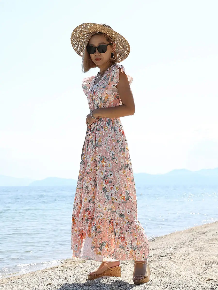 ラップスタイルの花柄マキシワンピースは羽織としても活躍してくれます。