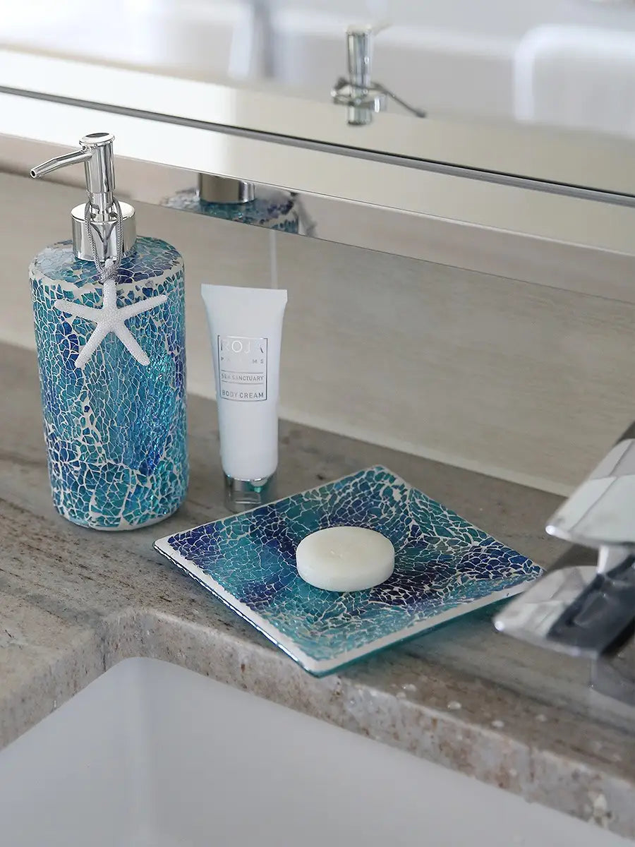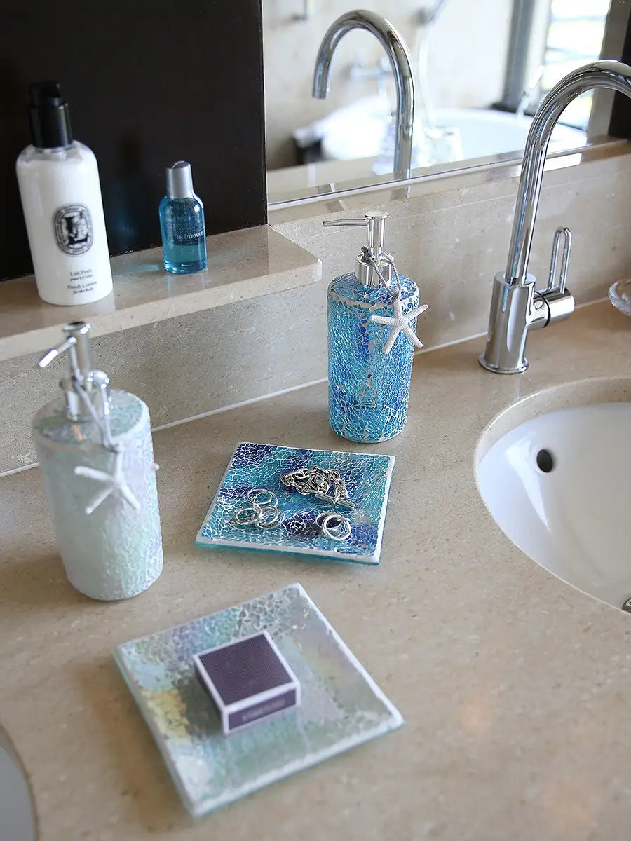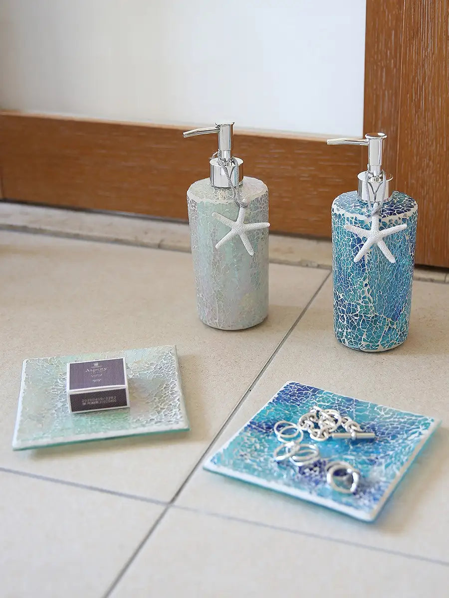 モザイクビーチタイルディスペンサーとプレートのセットです。