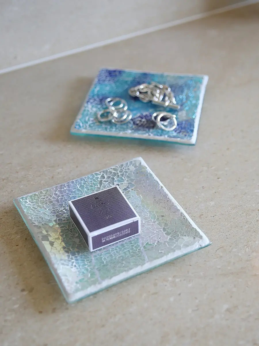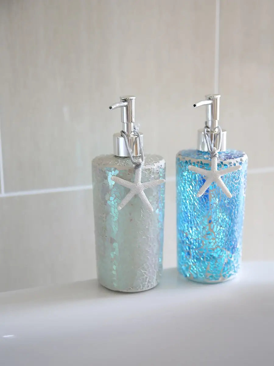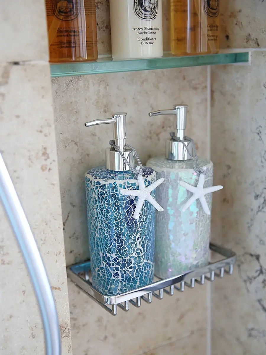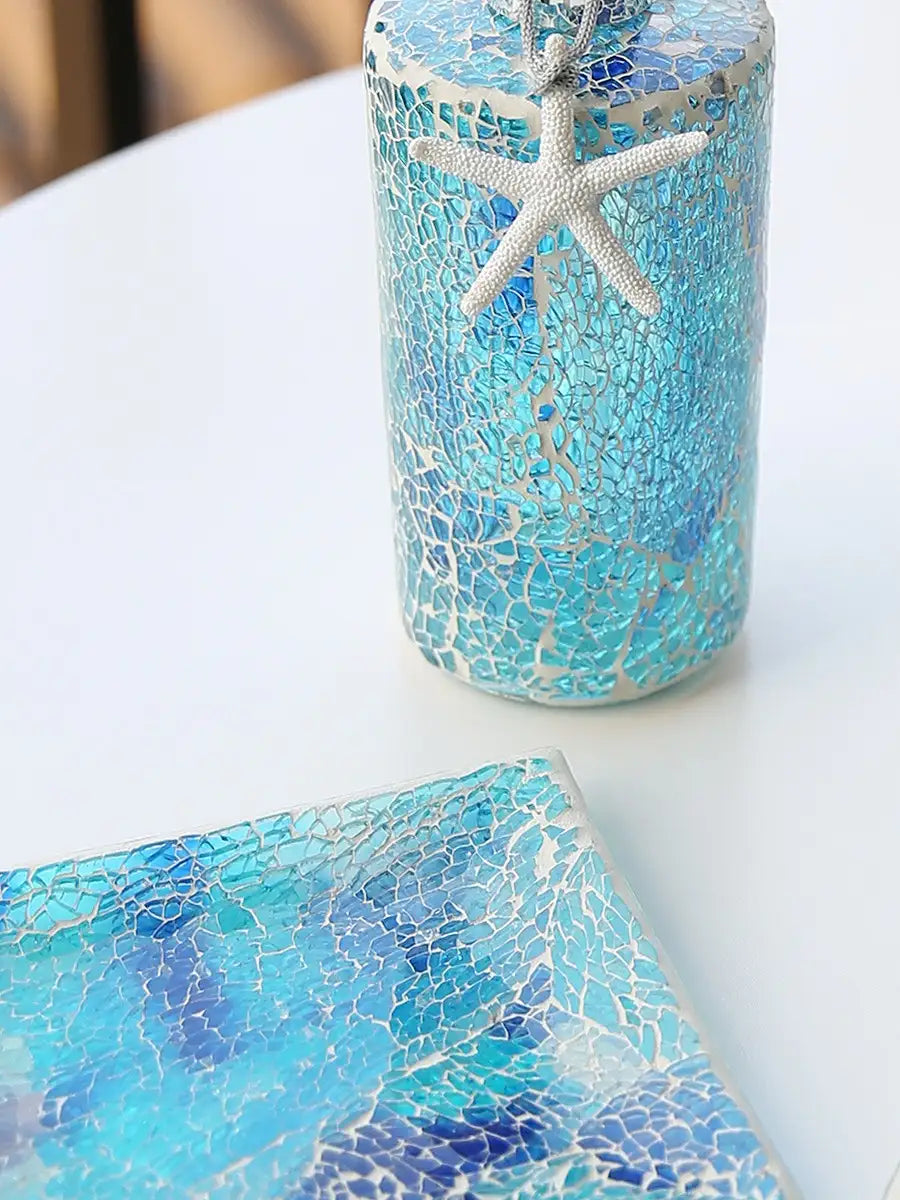 モザイクビーチタイルディスペンサーとプレートのセットです。