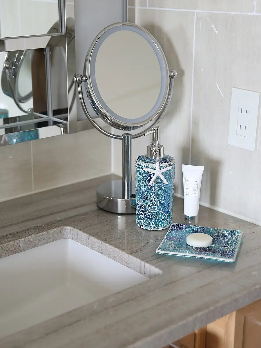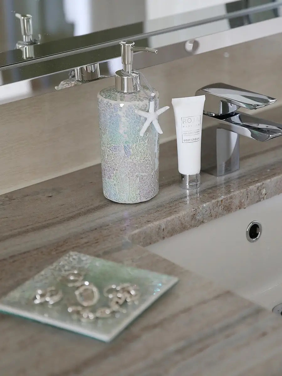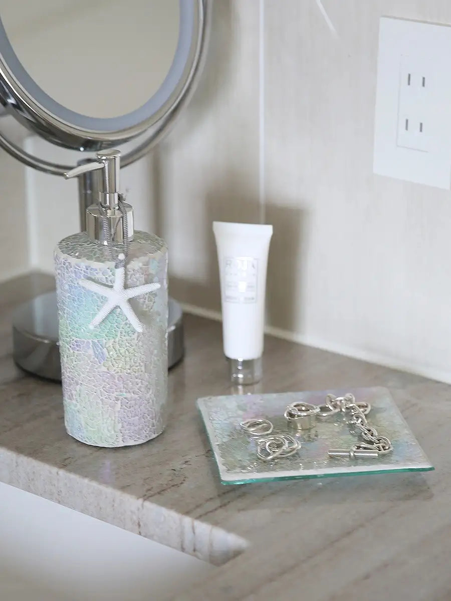 光に当たると更にキラキラ度が増すので、光が入るバスルームにちょこんと置くのがおすすめです。