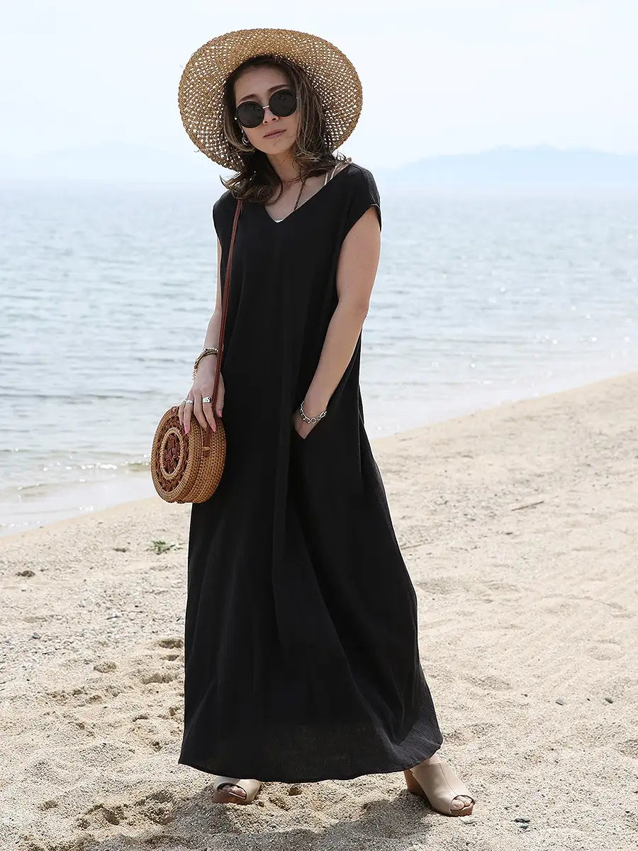 美しいAラインシルエットで体型カバーを叶えてくれるマキシワンピース。