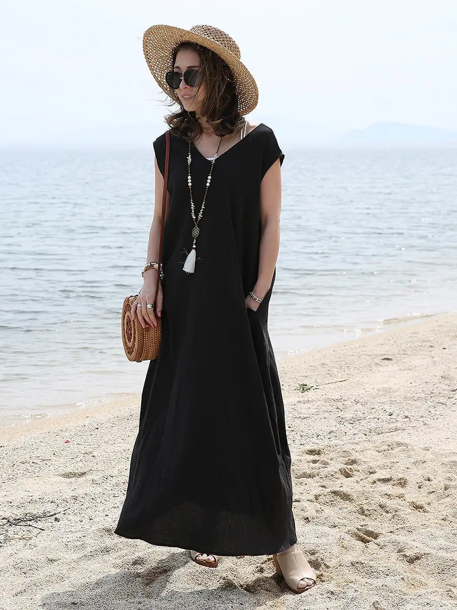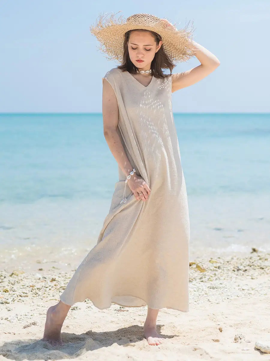 Sea Harbour(シーハーバー)コットンリネンノースリーブマキシワンピース
